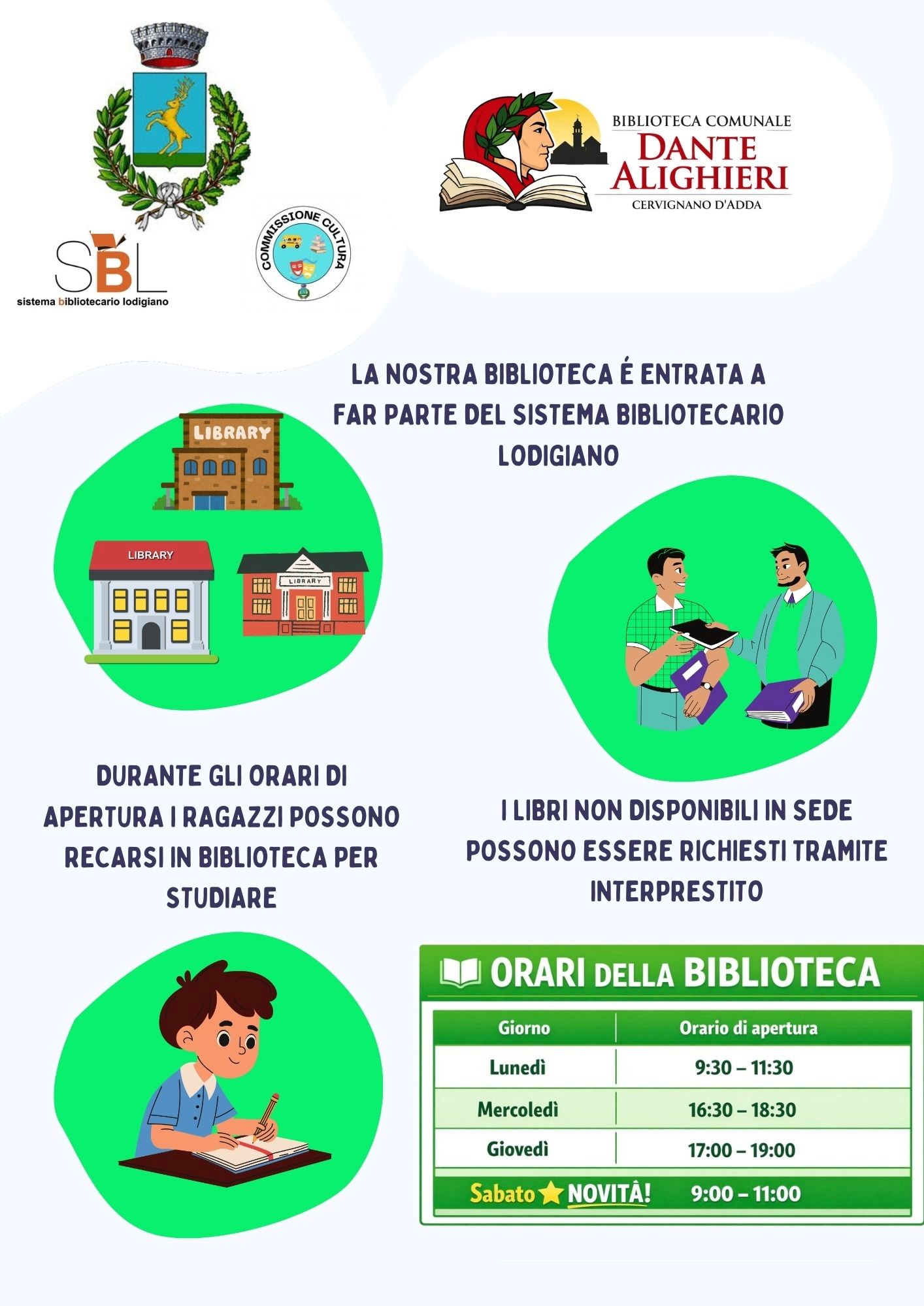 LA NOSTRA BIBLIOTECA E' ENTRATA A FAR PARTE DEL SISTEMA BIBLIOTECARIO LODIGIANO.